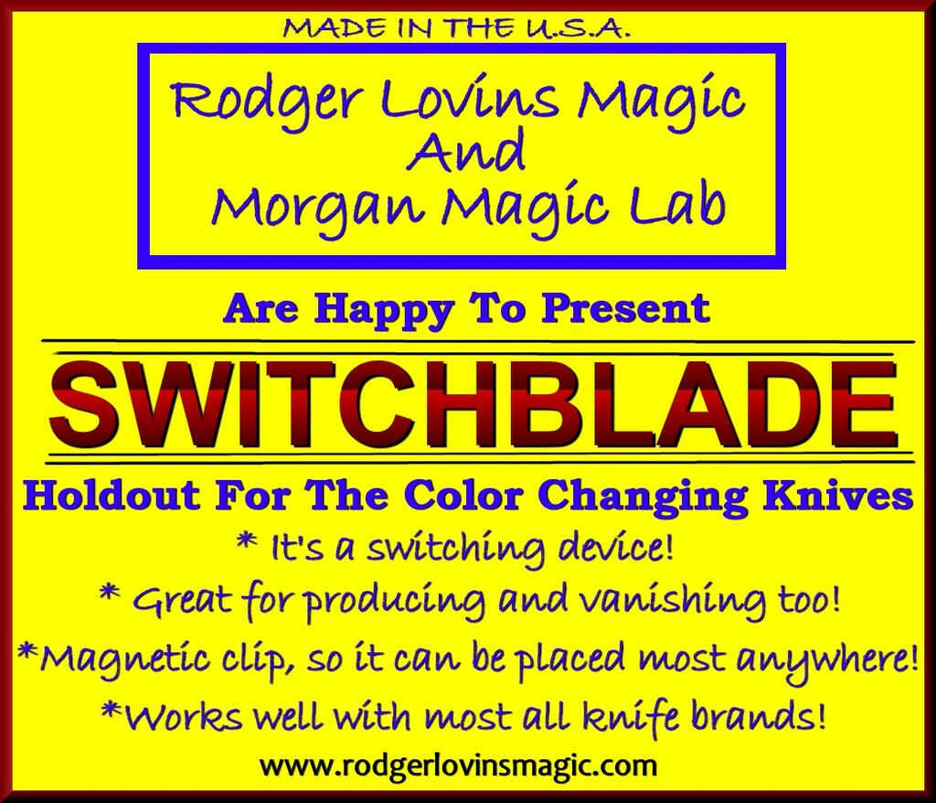 This small holdout device is magnetic and can be placed most anywhere. Outside of your back pocket, under the tail of your jacket, on your belt or anywhere else you may like to switch out, make a steal or drop off a vanish of your knives or any small object that can be held by a magnet! I have used it to produce a small metal wand and our steel shimmed Sharpie!